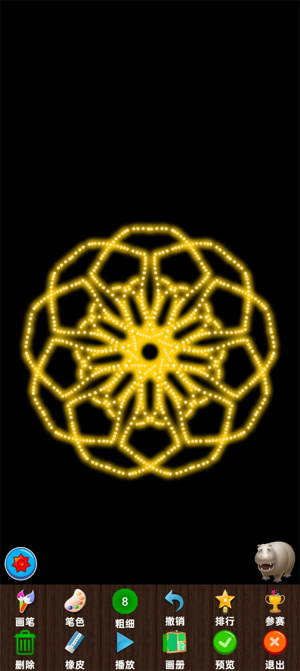 6、荧光绘画,可参加绘画大赛,您可以查看往期经典作品,动画视频播放其他绘画作品,边学边创作