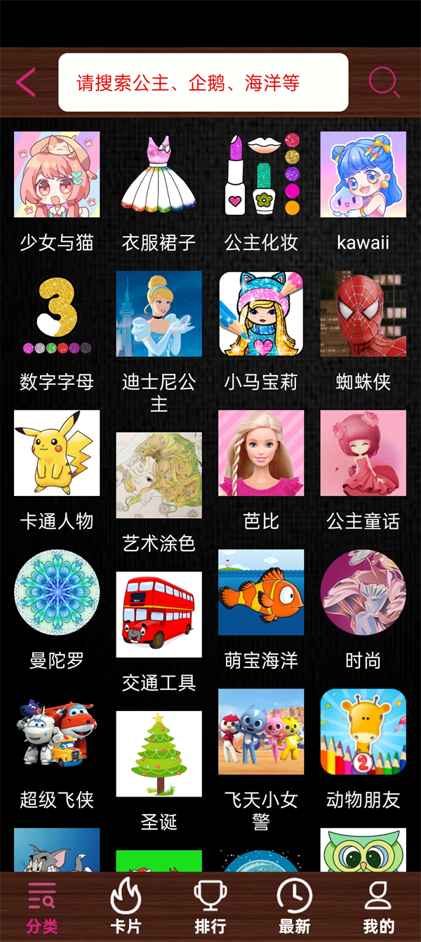 4、涂色小屋,海量涂色本,包括动物本、植物本、童话公主本和各种动画片人物本等