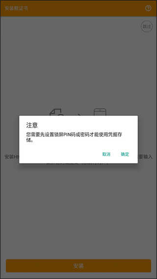 2、由于系统限制,安装证书时必须输入手机锁屏密码,如果未设置需要先设置