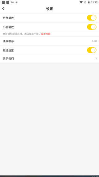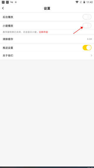 设置界面点击“小窗播放”后面的圆点
