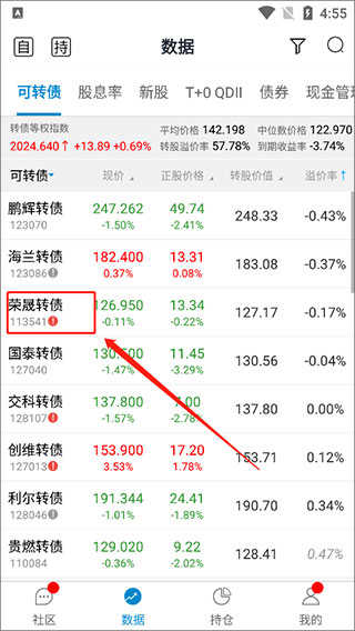 2、在数据页面,选择“可转债”能够看到所有可转债的信息了。