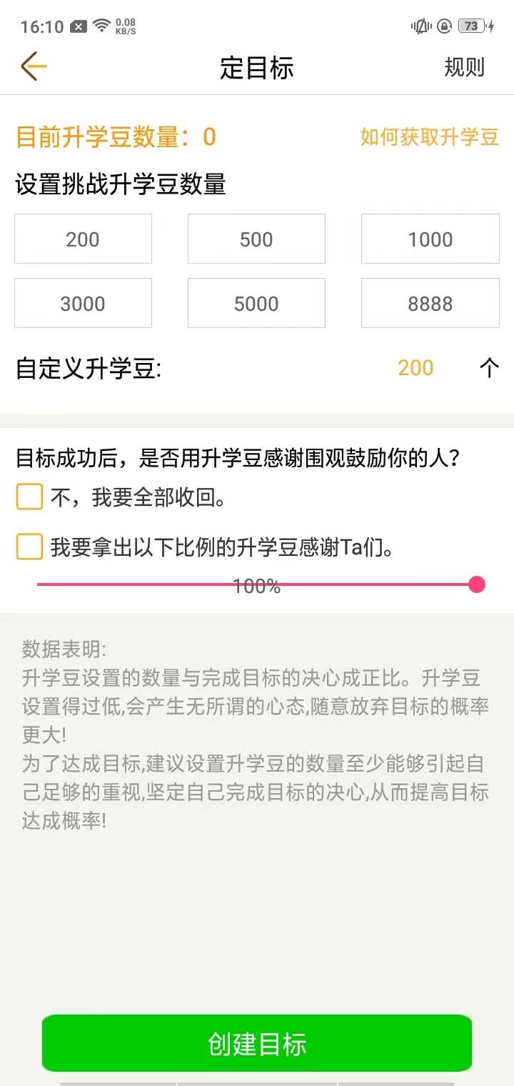 5、接着设置挑战升学豆数量以及勾选下方的任意一项,之后就可以创建目标了。