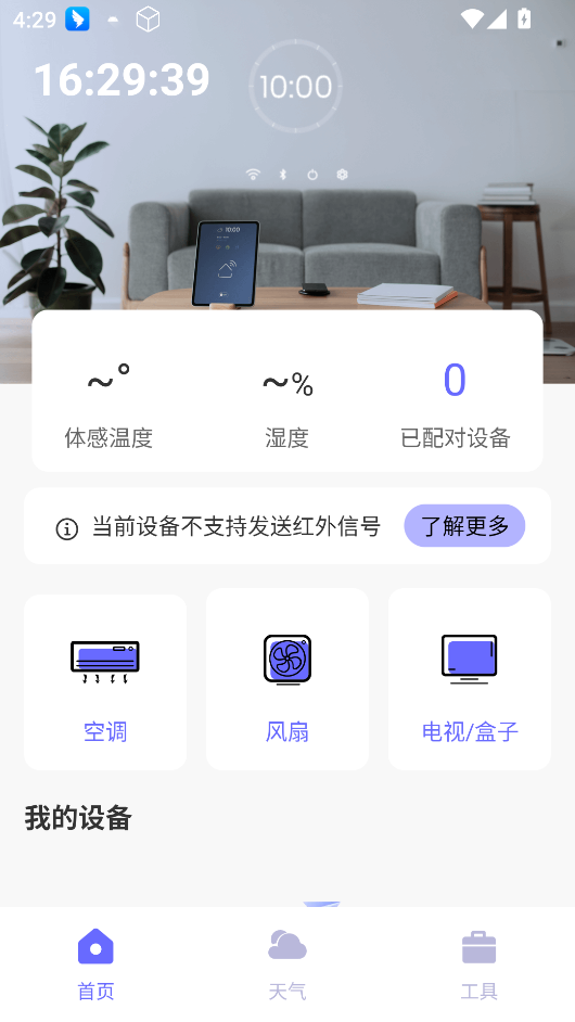 2、首页可红外连接空调、风扇、电视等。