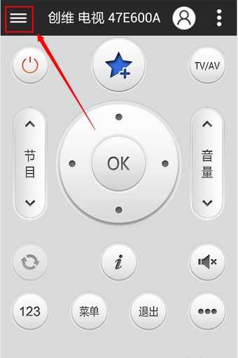 老用户启动APP后,在遥控器面板点击左侧菜单键,可加载出同个场景下的遥控器列表,点击列表下方的“添加遥控器”;