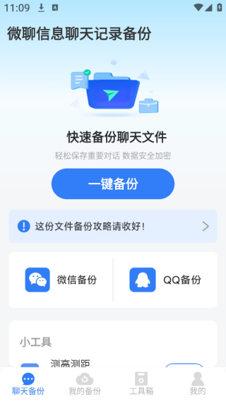 2、进入首页可以看到丰富的功能,可以一键备份聊天记录。