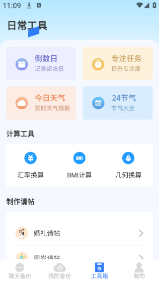 4、点击【工具箱】进入,多种便民功能比如说倒数日以及天气等服务都是可以使用。