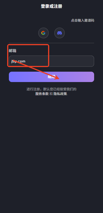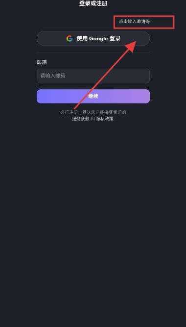 1、在本站下载安装Feelin AI,打开软件,接着找到登录界面右上角的【点击输入邀请码】。