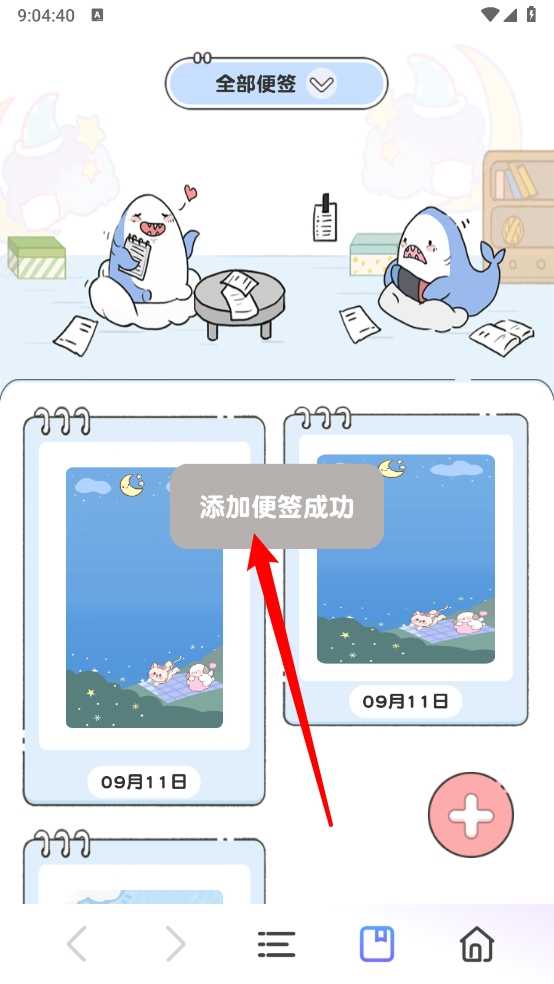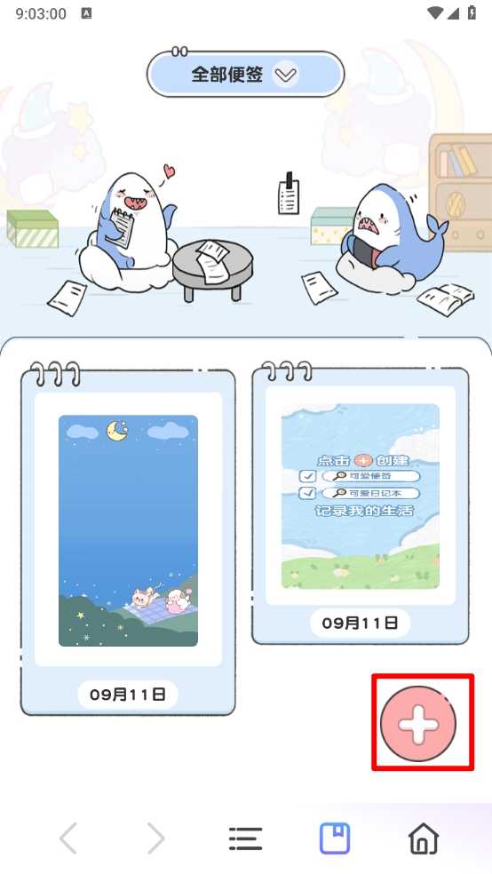 1、打开夸夸极速浏览器app,在主页点击便签图标,如图。