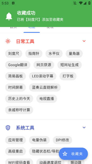 5、现在在收藏夹里就能看见自己需要收藏的工具了