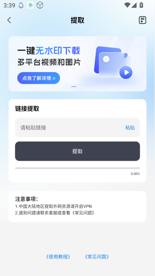 4、点击“去提取”可输入链接提取视频和图片。