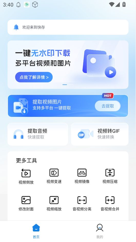 3、首页可提取视频图片等,给还有多种工具。