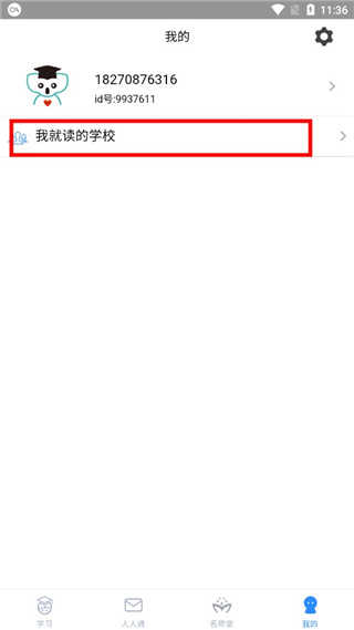 1、下载进入考一考学生端app,点击下栏中"我的"选项;