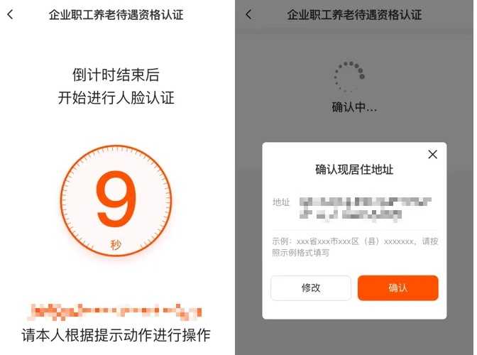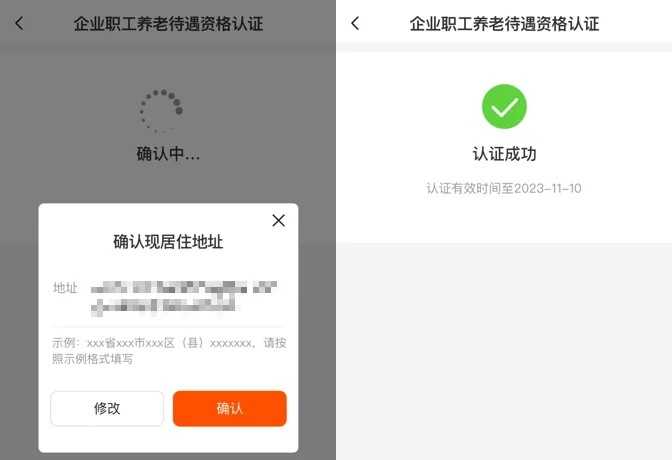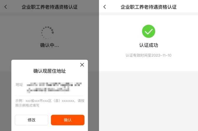 3.确认弹出的居住地址信息,信息有误可以点击“修改”进行更新,操作完成待出现“认证成功”的提示后即可。
