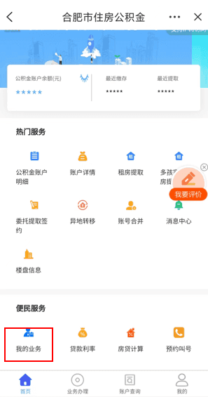 2.选择需要办理业务所在地,这里以合肥市为例,选择“合肥市”进入服务页面。点击下方“业务办理”进入,选择“租房提取(为例)”,按提示完成操作,填写相关信息后即可完成申请。
