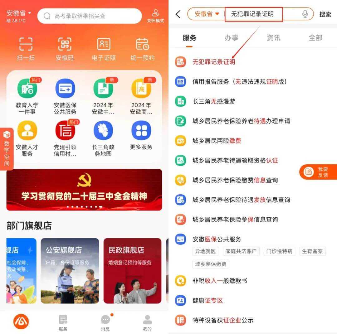 安徽政务服务网如何办理“无犯罪记录证明”