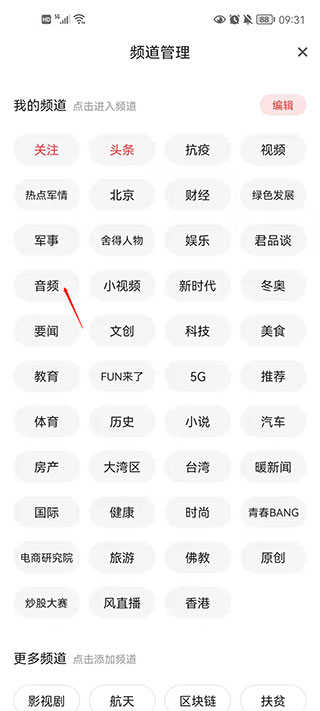 2、虽然不是所有的新闻都支持该功能,但是凤凰新闻极速版提供了音频专区,用户在频道管理页可以找到此专区。