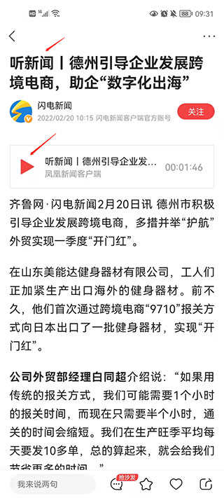 1、目前并不是所有的新闻资讯都支持听新闻的,一般是带有听新闻|前缀的才可以,用户只需要点击正文上方的红色播放按钮即可开启听新闻功能。