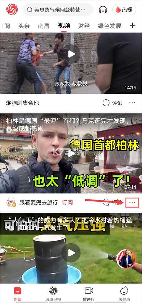 1、首先,在首页的视频区域中,浏览并选择您心仪欲下载的视频内容,随后轻点视频右下角的“更多选项”(以“...”图标表示)。
