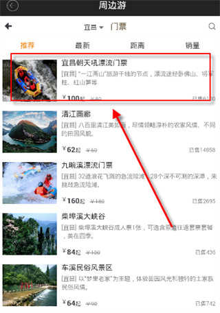 3、在周边游,您可以根据需求点击不同的窗口,比如点击“门票”;