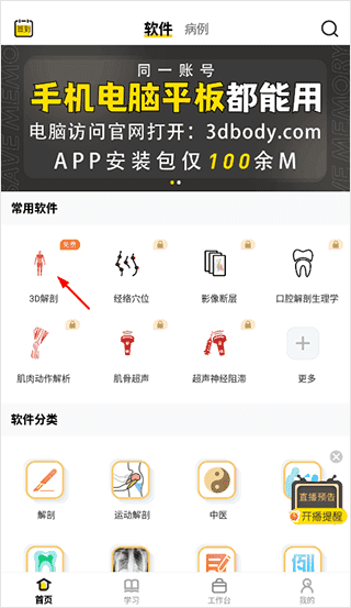 1、首先打开3dbody解剖最新版,点击3d解剖;