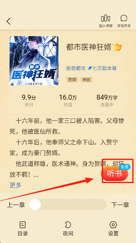 1、点开想看的小说进入阅读页面,点击右上角的加入书架