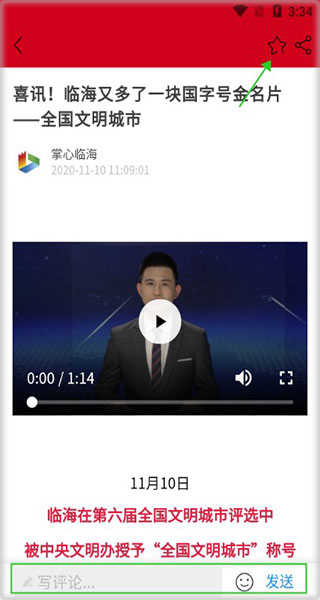 2、用户找到自己想看的新闻里面可以收藏、评论、转发等;