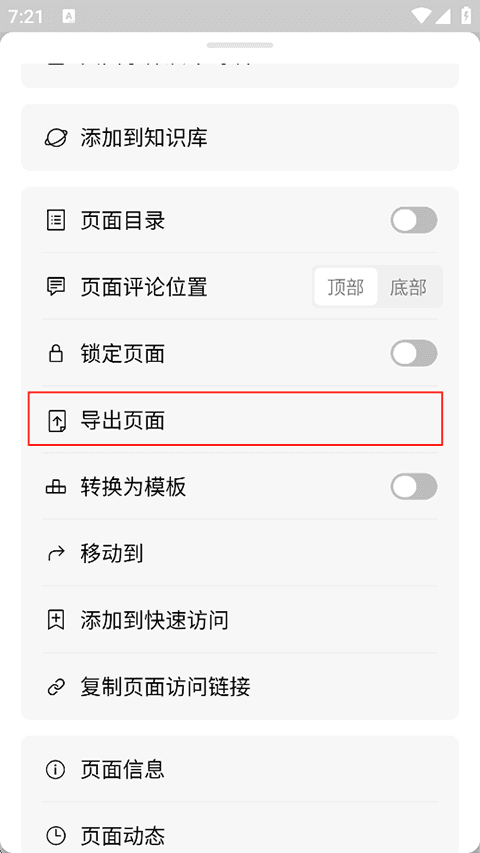 1、打开FlowUs息流,选择一个需要导出的页面文档并点击右上角的...扩展按钮;