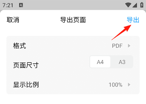 3、选择格式、页面尺寸、显示比例,点击保存;