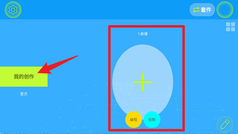3、在“我的创作”栏目中,用户可新建项目,通过编程或控制模式创建属于自己的机器人程序。