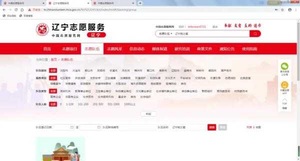 1、浏览器搜索中国志愿服务网或者输入https://chinavolunteer.mca.gov.cn/,进入后点击右上方志愿者注册