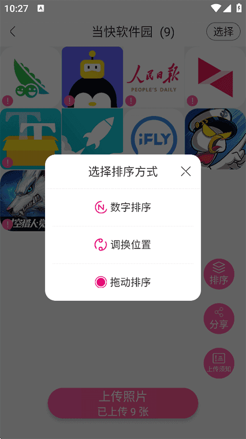 4、上传完毕后可以对相片进行数字排序、调换位置以及拖动进行排序;