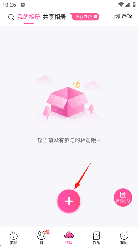 1、打开美印兔兔APP,点击相册-我的相册-添加按钮;