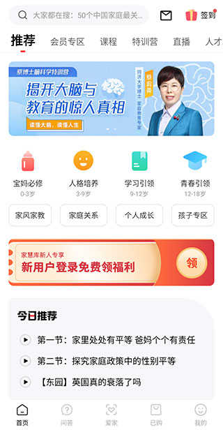1、汇集了大量的优质学习资源,主打家庭教育,帮你正确处理家庭关系。