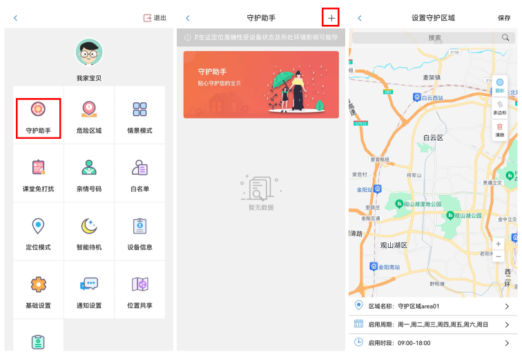 2. 守护助手设置:设置 “安全圈”,进出自动预警