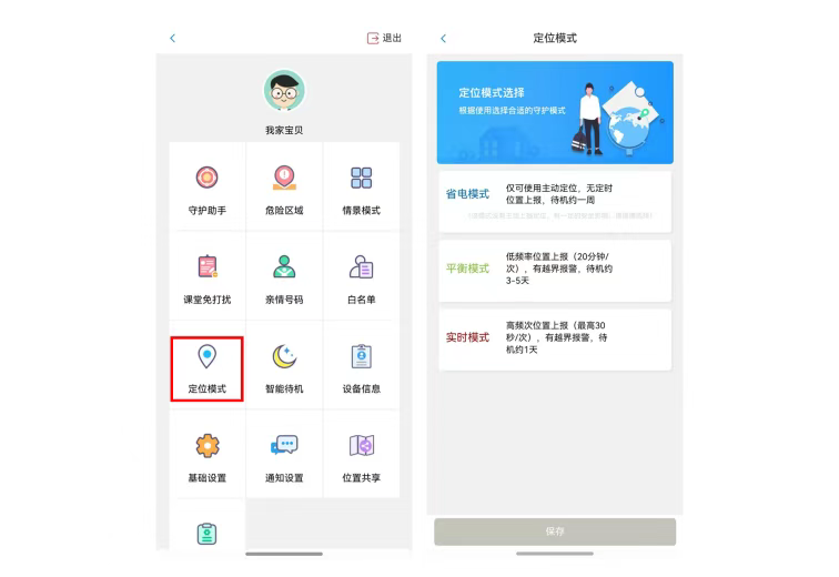 【省电模式】:仅手动定位时上报位置,待机约 1 周→适合夜间在家、周末无需频繁定位时用;