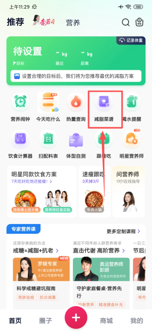 3、于主界面选择"减脂菜谱"功能,查看相关饮食内容。