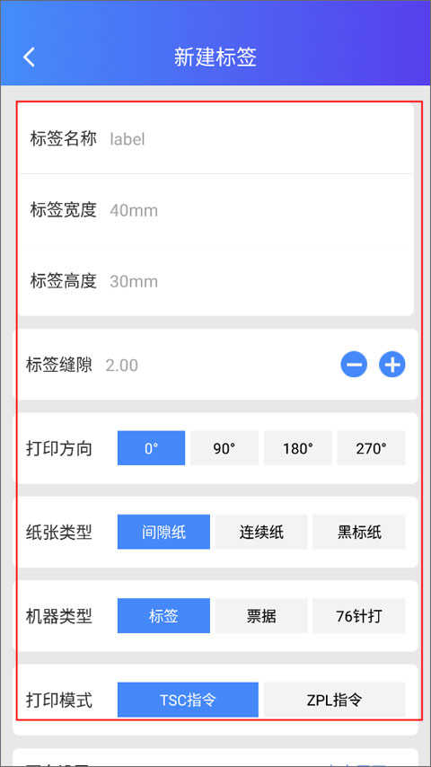 1、首先第一步就是新建标签,点击中间的“+”按钮开始创建标签,设置标签名称、宽度、缝隙等参数。
