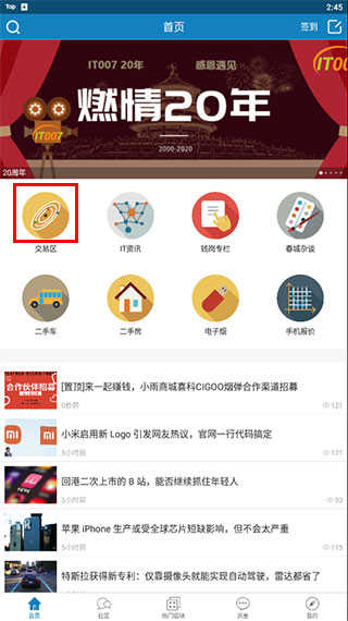 1、打开it007安卓版,在首页点击交易区;