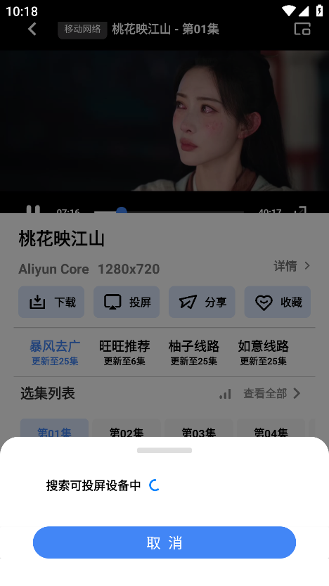 4.将我们的手机和电视连接同一个WiFi,等待下方出现了投屏设备名称即可点击连接,然后开始投屏。