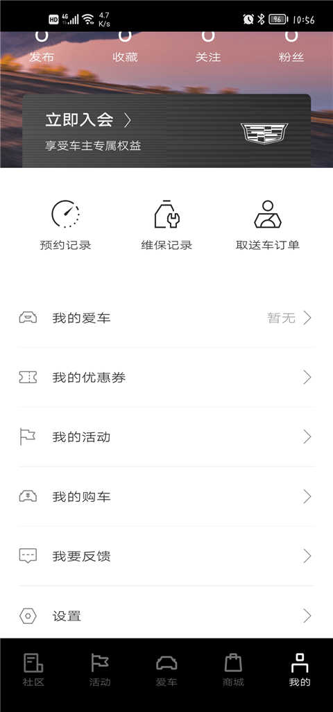 1、在本站下载安装并打开凯迪拉克APP,进入软件首页,找到我的点击进入页面。