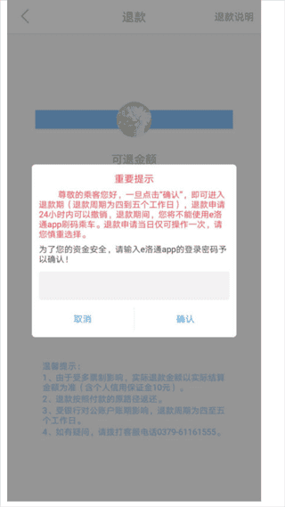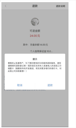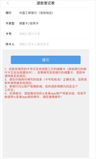 含有超过3个月金额的退款,请填写退款登记表(暂时仅支持洛阳地区工行卡)
