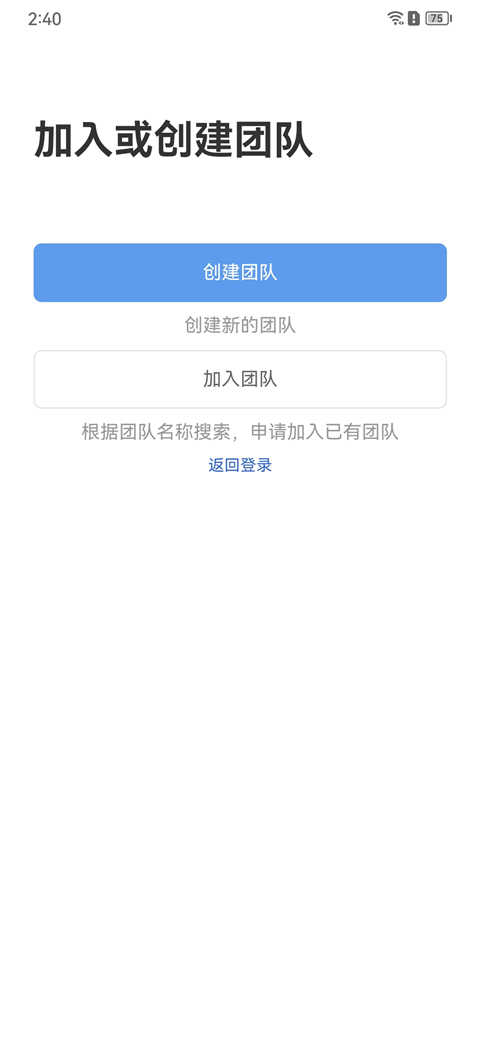 1、下载安装好通过qq、微信等途径进行登录,之后我们进入app选择创建团队还是加入团队;