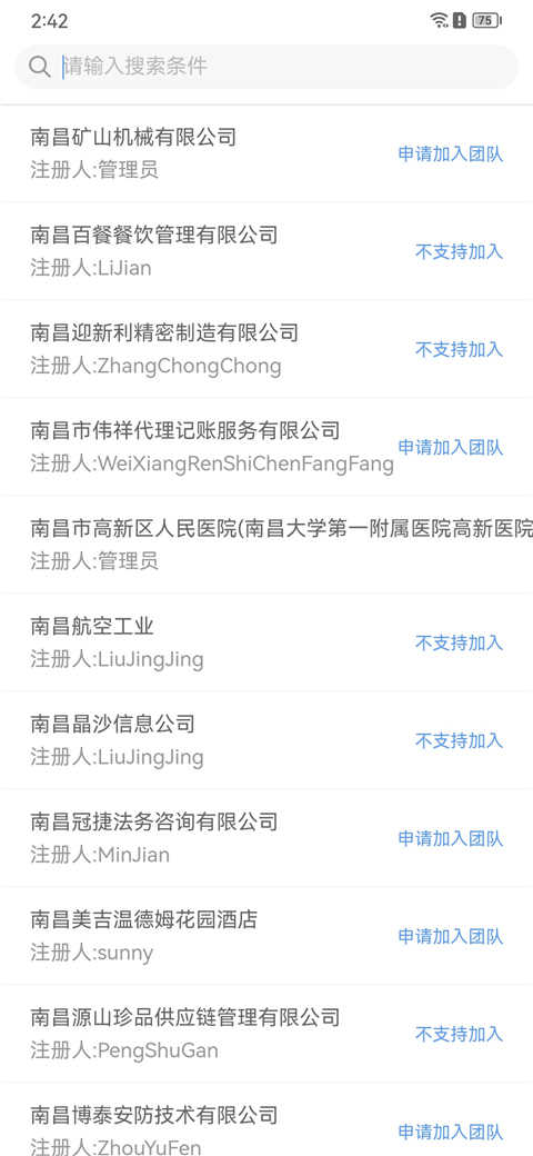 2、如果你是需要进入团队,在搜索框中输入相应的公司;