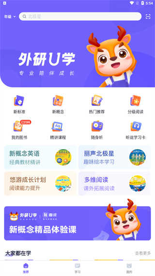 一、打开外研U学学生版app,在推荐界面中点击你要缓存的课程,如悠游国际少儿英语学生包