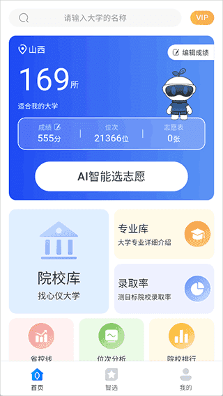 3、用户点击【ai智能选志愿】后可以进行智能选校
