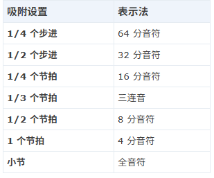 1/6到1个节拍-绝对节拍值等于一个节拍的指定分数。