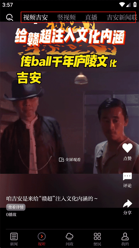 3、点击视听功能页,您可以在这里观看关于吉安的各种有趣短视频;