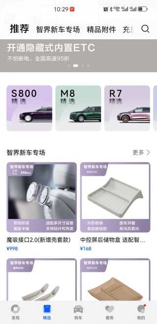提供多品类商品选择,支持积分抵扣商品,鸿蒙智行购物精选频道伴随出行更轻松。