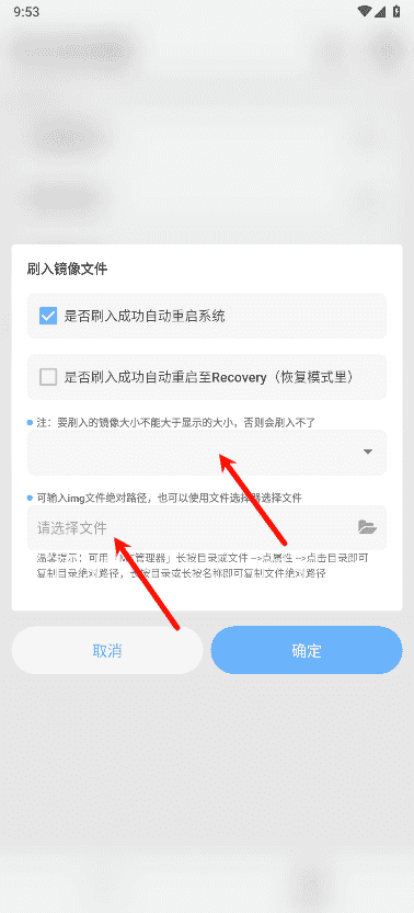 3、分别选择要刷入的镜像文件以及可输入img文件绝对路径;