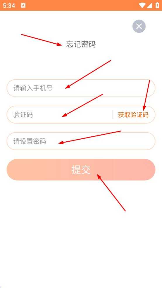 3、密码重置界面需填写手机号获取验证码,设置新密码后提交即可完成修改。
